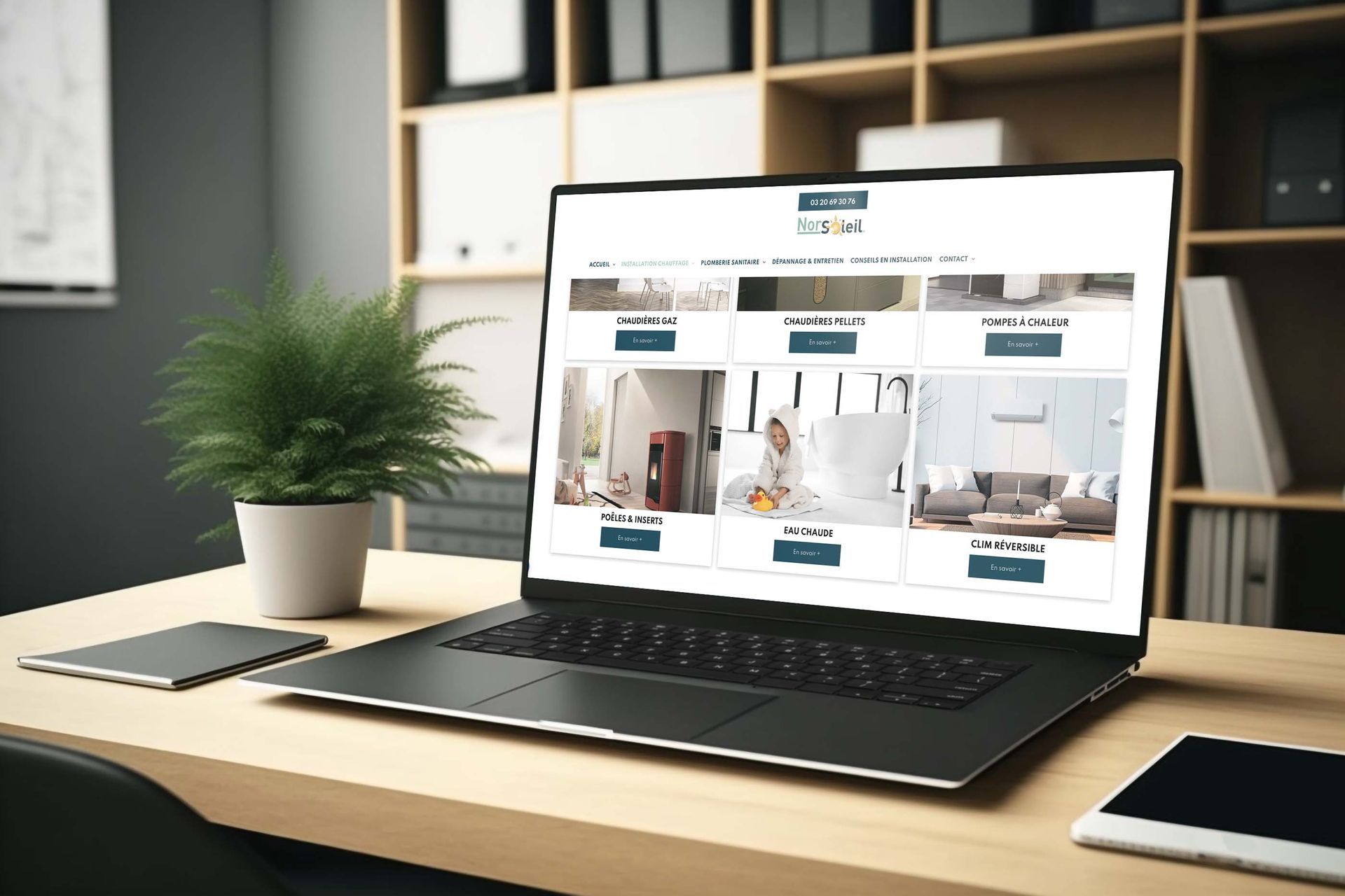 Norsoleil, expert en chauffage et plomberie sanitaire dans la métropole de Lille, a fait confiance à notre agence pour la conception de son site web et l'amélioration de son référencement SEO afin de renforcer sa visibilité et d'optimiser sa présence sur les moteurs de recherche.