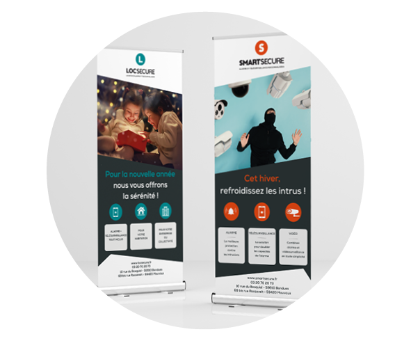 Grâce à son format vertical et sa grande surface d'impression, le Kakémono vous permet de jouer sur les graphismes et les messages forts pour vous identifier rapidement et efficacement auprès de votre public cible.